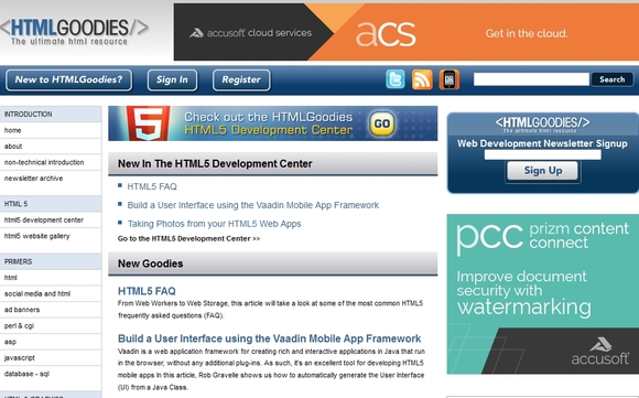 HTMLGoodies的HTML基礎包括HTML 5的功能、鍵盤事件、視頻內容、媒體事件、鼠標事件和更多的教程。如果您正在尋找的文章來介紹如何使用HTML 5,它是一個開始的好地方。
