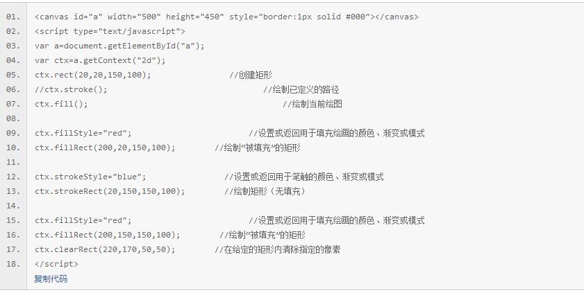 fillRect()繪制“被填充”的矩形和fillStyle屬性一起使用,放在fillStyle屬性后面
