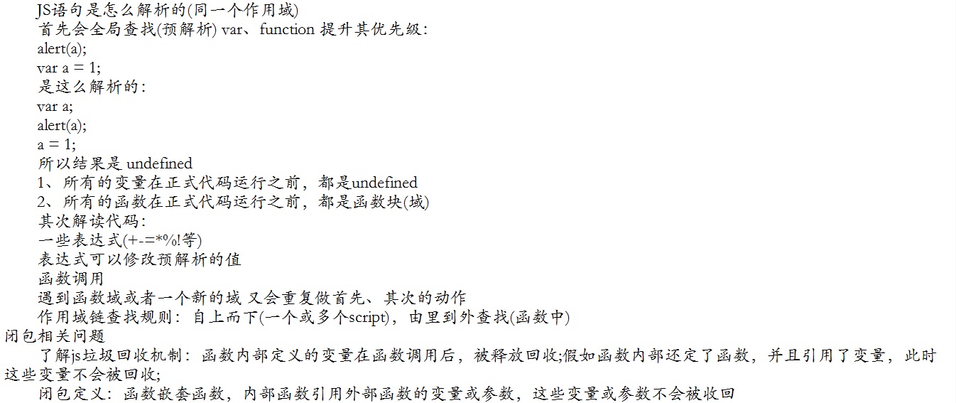 關于JS解析機制、作用域、閉包的一些總結