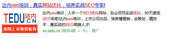 第一種,常規(guī)的創(chuàng)意,知識最長規(guī)的標(biāo)題+圖片+描述+網(wǎng)址的一個創(chuàng)意了,對于這種樣式,我們只要把核心關(guān)鍵詞放在標(biāo)題中,在創(chuàng)意中展現(xiàn)更多我們的實力就可以了,針對于圖片,最好使用自己的logo或者是有吸引力的圖片。從這張logo中我們可以看到他是一家上市的教育機(jī)構(gòu),這就大大的提高了可信度。