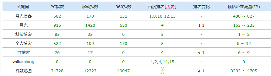 之所以景點,就是今天我們要將的這個例子是大家都非常熟悉的月光博客,首先我們來看看月光博客的關鍵詞排名。