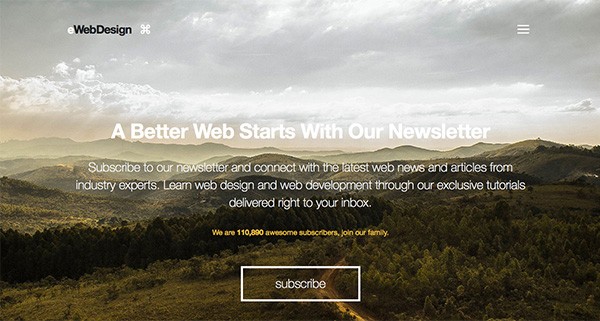 標題欄的顯眼圖片和詼諧的slogan,這二者的組合能夠絕對地吸引用戶的注意。隱藏導航欄有效地以不突兀的方式將重心從導航欄轉(zhuǎn)移到了復雜的背景上。