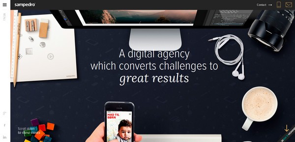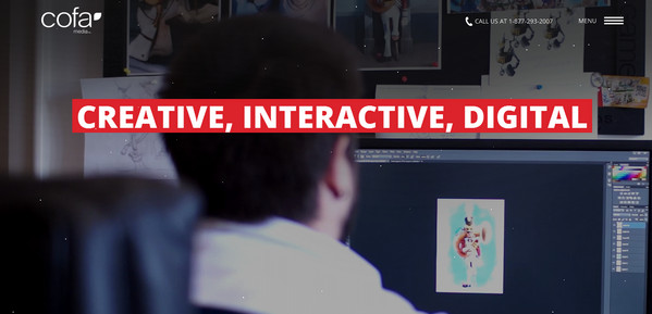 Cofa Media通過其描繪公司工作流程的有趣視頻背景來吸引用戶。略微細長的漢堡按鈕巧妙地展現(xiàn)出主導航欄,進而占據(jù)整個屏幕,提高用戶體驗。