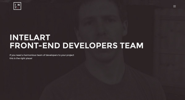 Intelart美妙的暗色首頁完美運用了背景與前景的對比。其左上角無縫貼合的漢堡按鈕與logo和文字完美回應,以美妙的方式呈現(xiàn)出了一副以圖片為核心的精美導航欄。