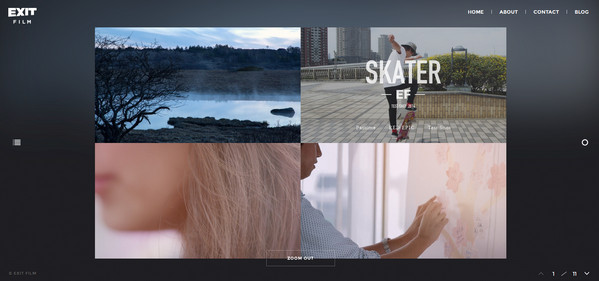 Exit Film采用了網(wǎng)頁設計潮流中比較新鮮的集中布局風格。其漢堡按鈕占據(jù)了中心位置,與非正統(tǒng)的頁面安排完美和諧。