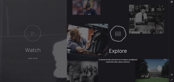 首頁整齊地分為兩個板塊,可以用鼠標單擊激活,包含了多種動畫控制方式。漢堡按鈕用肉眼幾乎看不見,但又是整體作品的關鍵部分,其可以作為網(wǎng)上讀者的方向標。