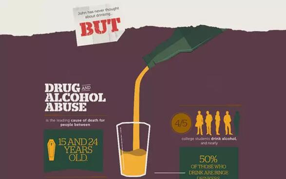 Drugs and Alcohol on Campus-就像前面的例子,這個充滿交互性的圖示暗中引發人們對社會熱點問題的思考。這里,滾動效果與主題有機地結合在一起,使這個問題看起來沒有那么的悲觀、生硬。